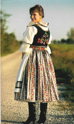 The kroje style we see today has its beginnings in the early 15th century, consisting of a simple head covering, a blouse, and a woolen, pleated skirt. Over time, the kroje adopted a different style. The Pleats and gathered lace reflected the Renaissance era. Bell-shaped skirts originated in Turkey during the Baroque period. Over the past few centuries, industrialization and manufactured textiles changed the style and creation of kroje.